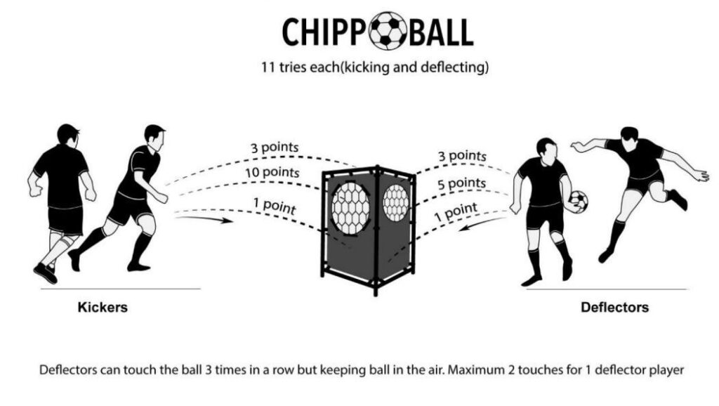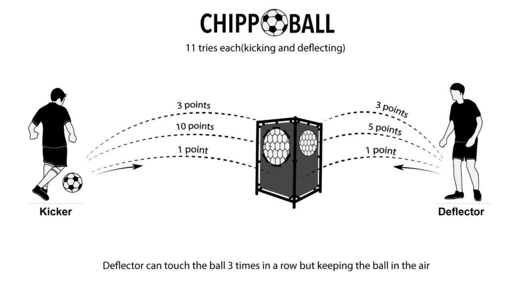 Players take turns throwing and deflecting a flying disc, soccer ball, volleyball, handball, or tennis ball.